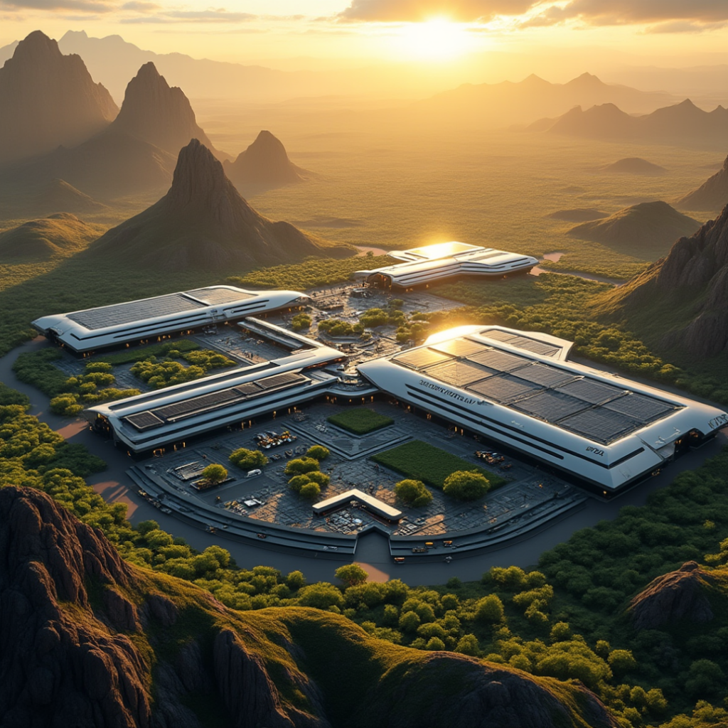 Image credit: Input to Wixel: “landscape of earth in a billion years facing the sun with a solar-powered factory.” The image shows a barren landscape under a scorching sun, but at least they’re harnessing solar power to run their factories for food production.