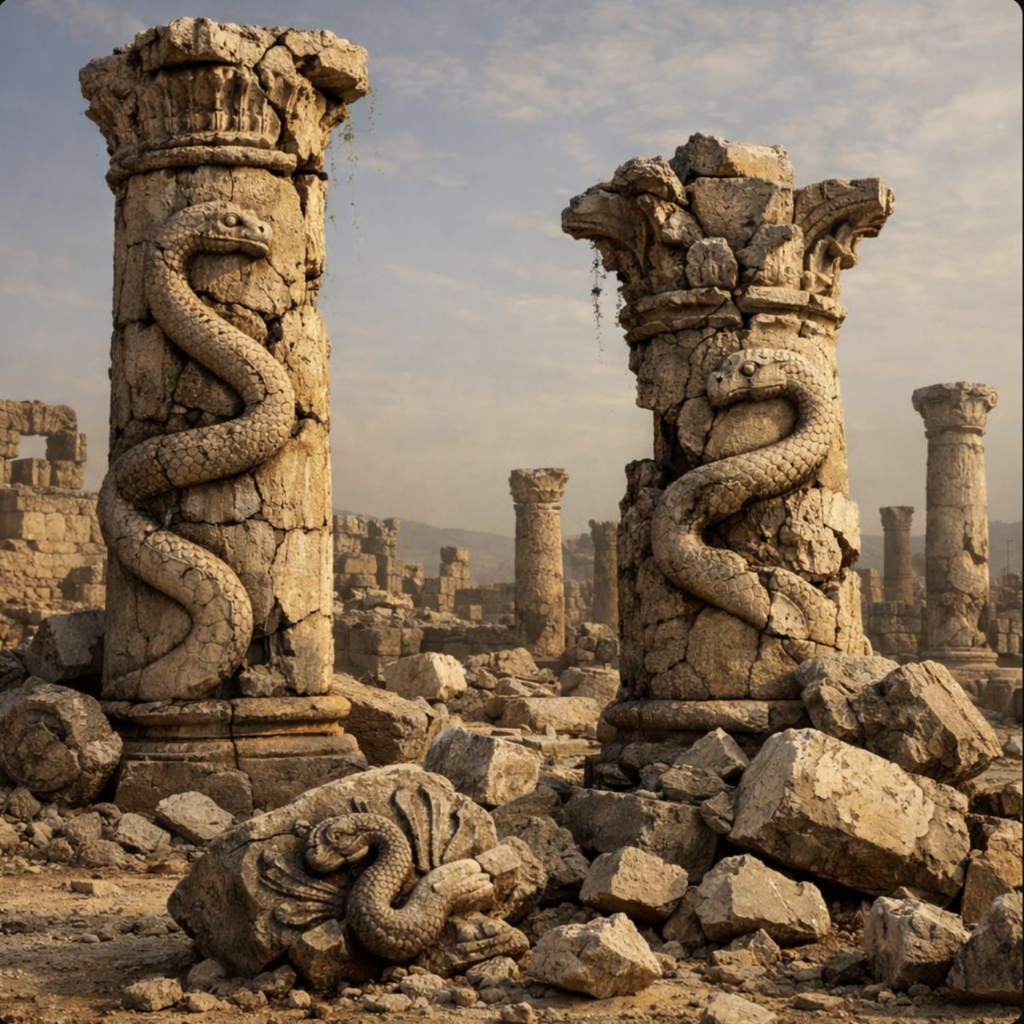 Editor’s Notes: Image of Crumbling Canaanite pillars (by wixel)